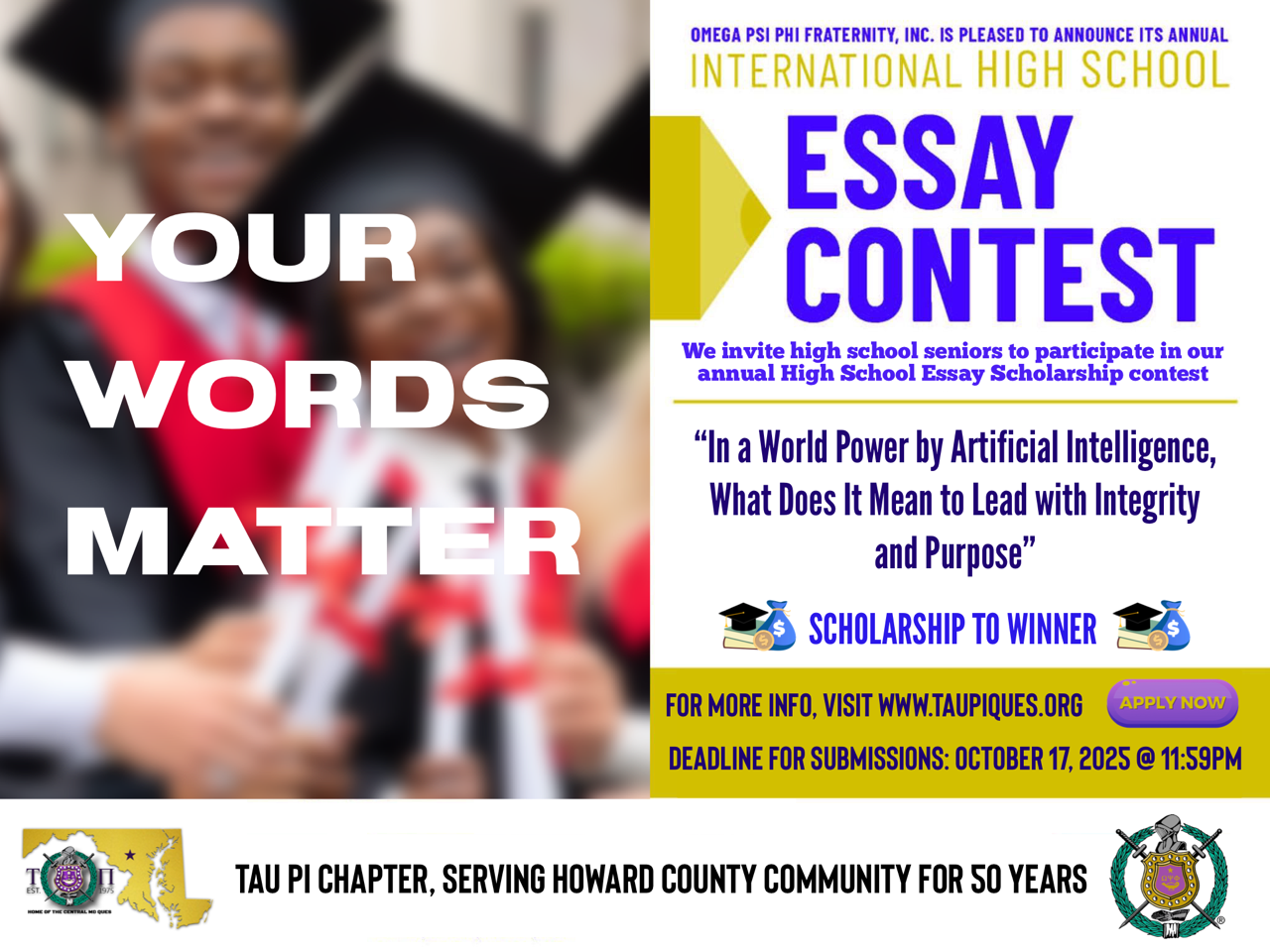 Omega Psi Phi Fraternity, Inc. is pleased to announce its 2025 annual International High School Essay Contest. As an element of the Annual International Achievement Week Observance, we invite high school seniors to participate in our annual High School Essay Scholarship contest.